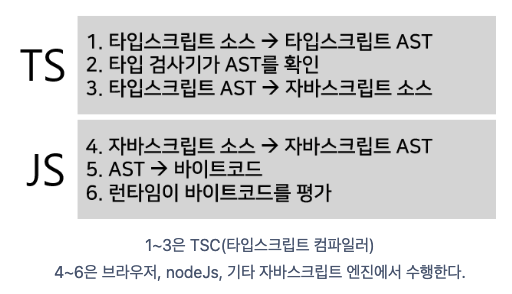 타입스크립트는 컴파일 단계에서 AST를 만들어 결과 코드를 내놓기 전에 타입 확인 과정을 거친다.